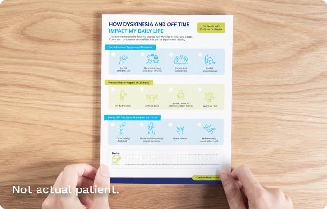 Managing dyskinesia and OFF time begins with a discussion among you, your patient, and their care partner.
